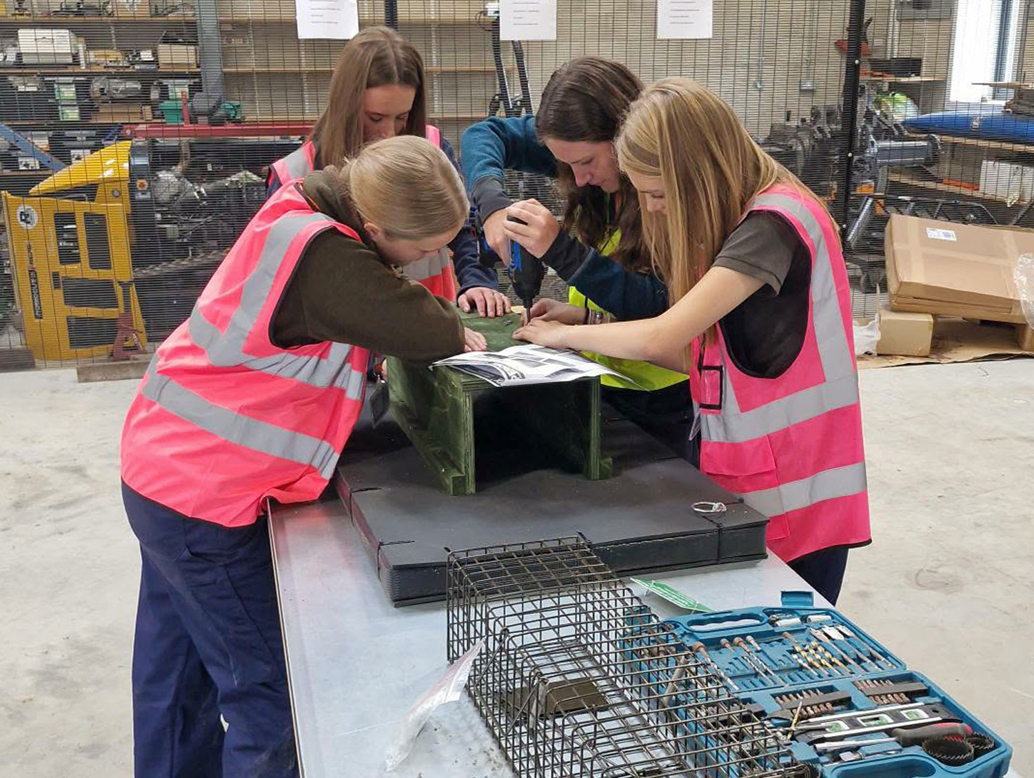 Pictures five and six show Bishop Burton College Students from the Level 3 Countryside Management and Game Keeping course putting mink rafts together and with the EYRT Project manager learning how to set the traps in the field.