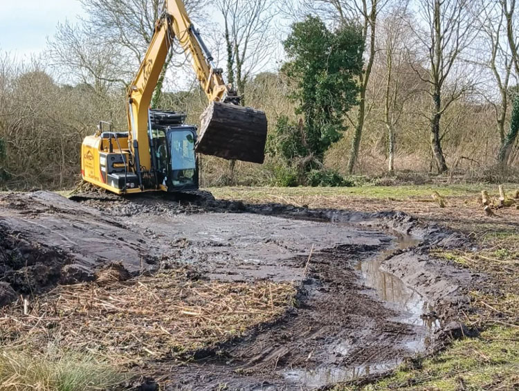 Diverting flood water to protect the local chalk stream and slow the flow.