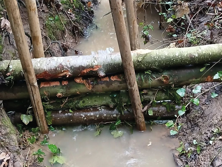 A simple leaky dam (pic 3 below). A series of these within a catchment can help to reduce the speed at which flood water reaches inhabited areas and reduce the chance of flooding.